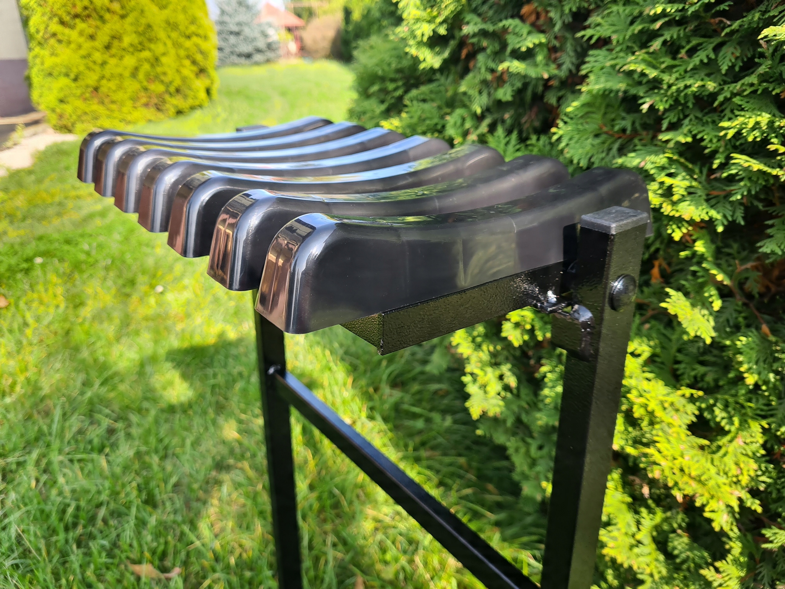Лава для встановлення на кладовищі. Виготовлена зі сталевого профілю та твердого та міцного пластику на сидінні.