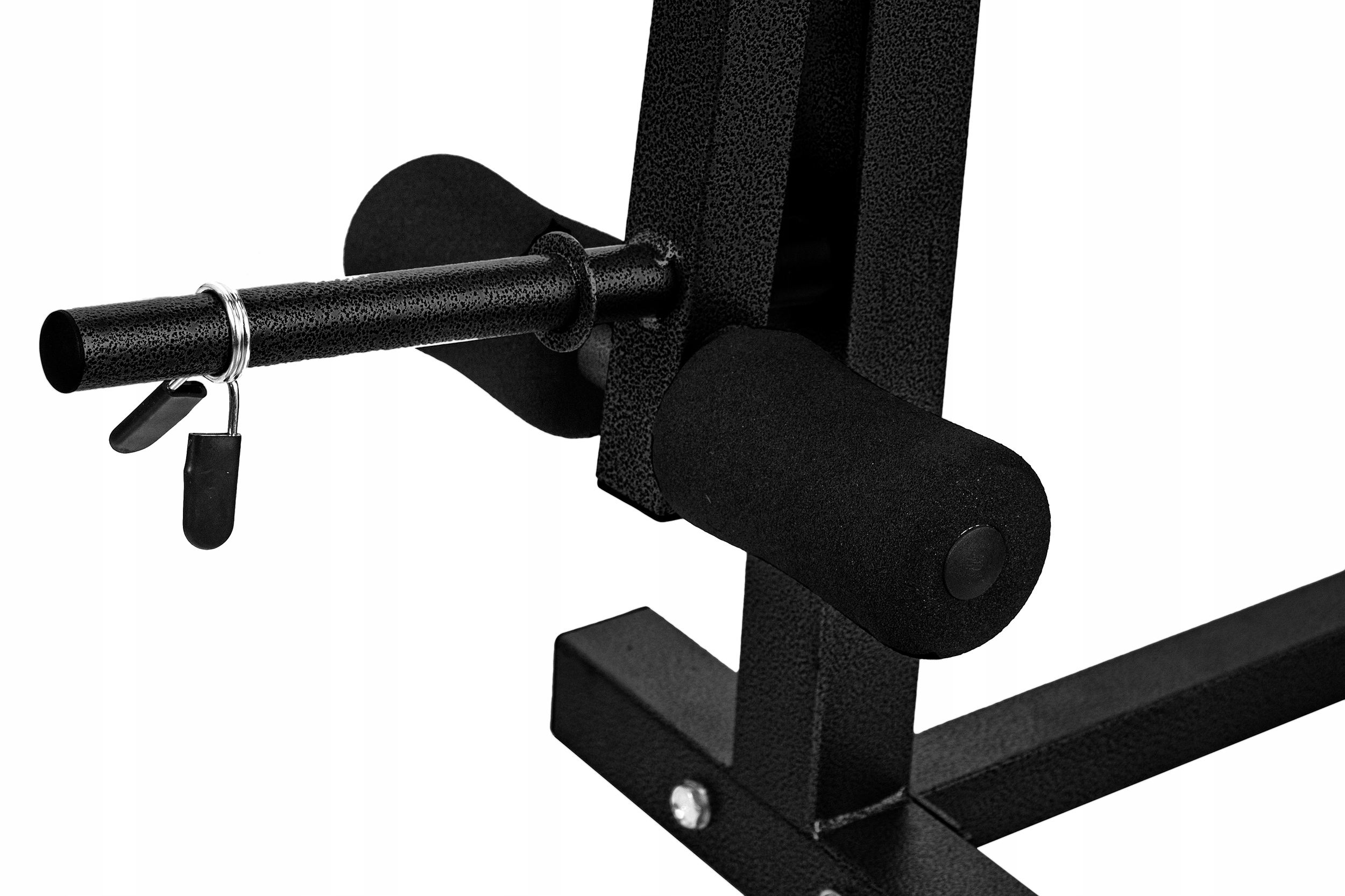 Стійки оснащені практичними фіксаторами штанги. Стійкі основи з шишеподібними затискачами забезпечують безпеку тренажера - дозволяють швидко змінювати висоту стійок. Лава XG-0500 також оснащена практичними ручками для французьких віджимань і системою швидкого розбирання проповідника/підйомника (за допомогою ручки).