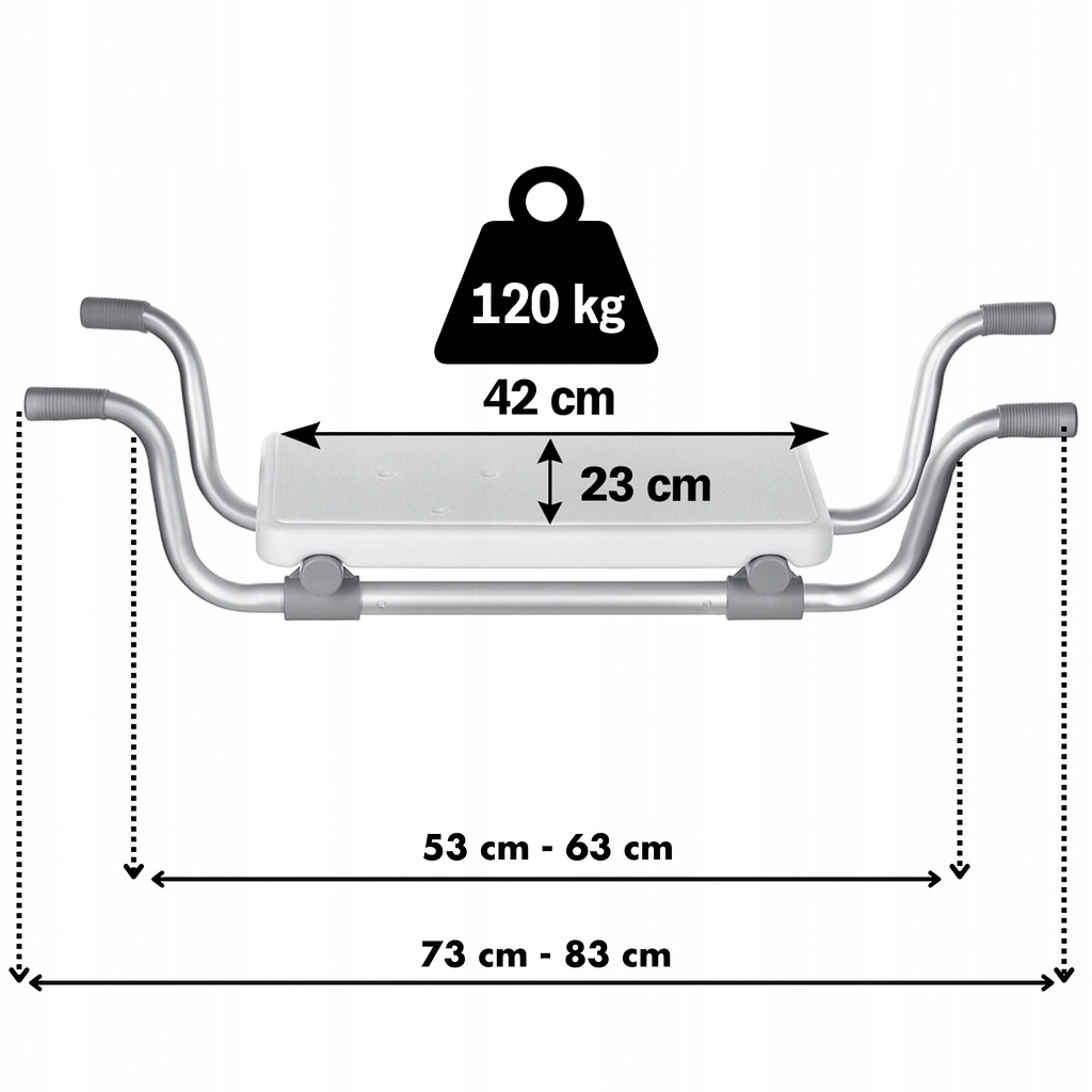 Завдяки глибокому ергономічному сидінню, міцній алюмінієвій конструкції та надійному кріпленню на краях ванни пристрій ідеально підходить для людей похилого віку, людей після травм та всіх, хто потребує додаткової стабілізації під час купання.