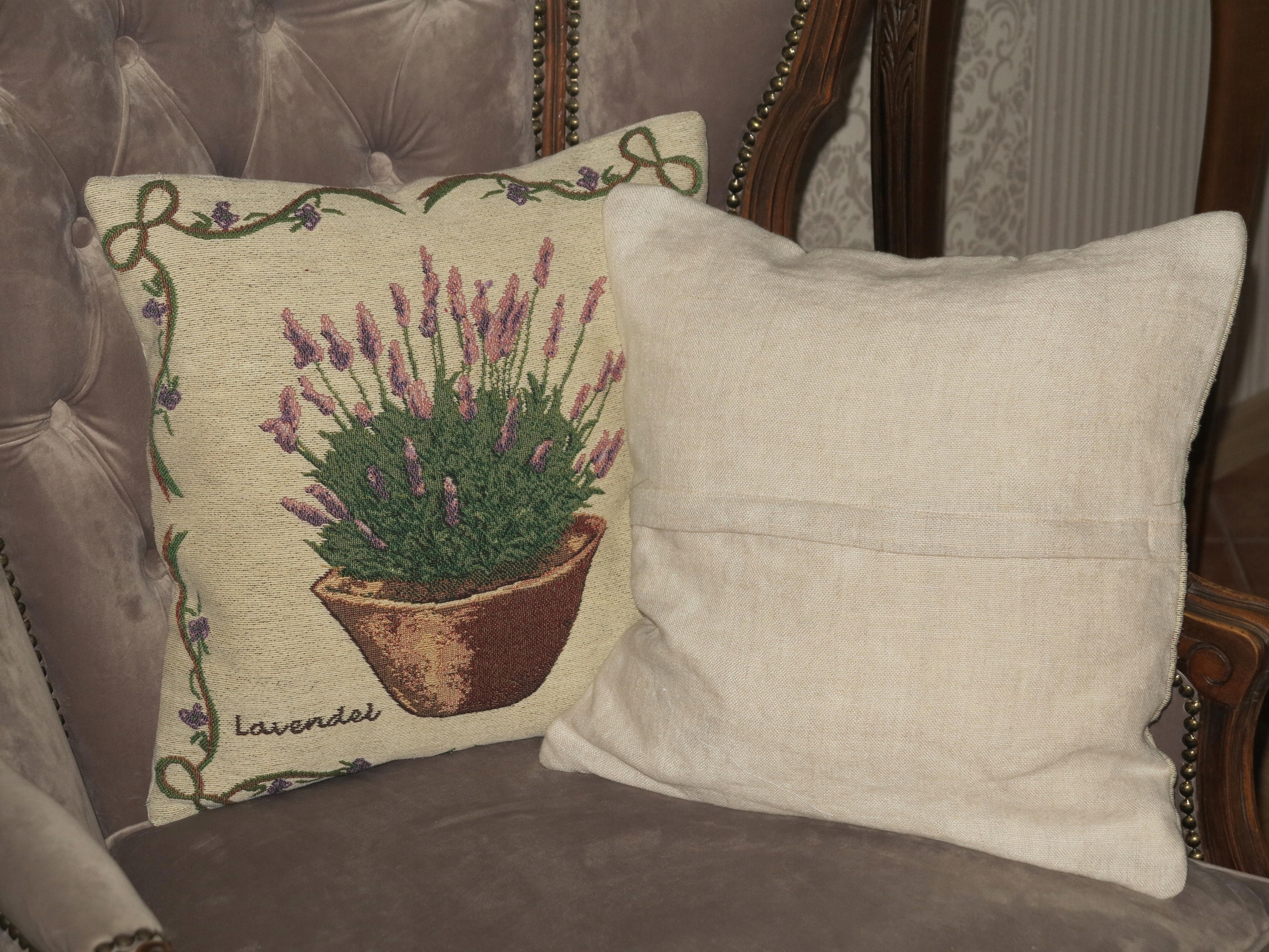 ЛАВАНДА - КРАСИВІ ПОДУШКИ ГОБЕЛЕН, СПИНКА ЛЬОН, НАПОВНЮВАЧ