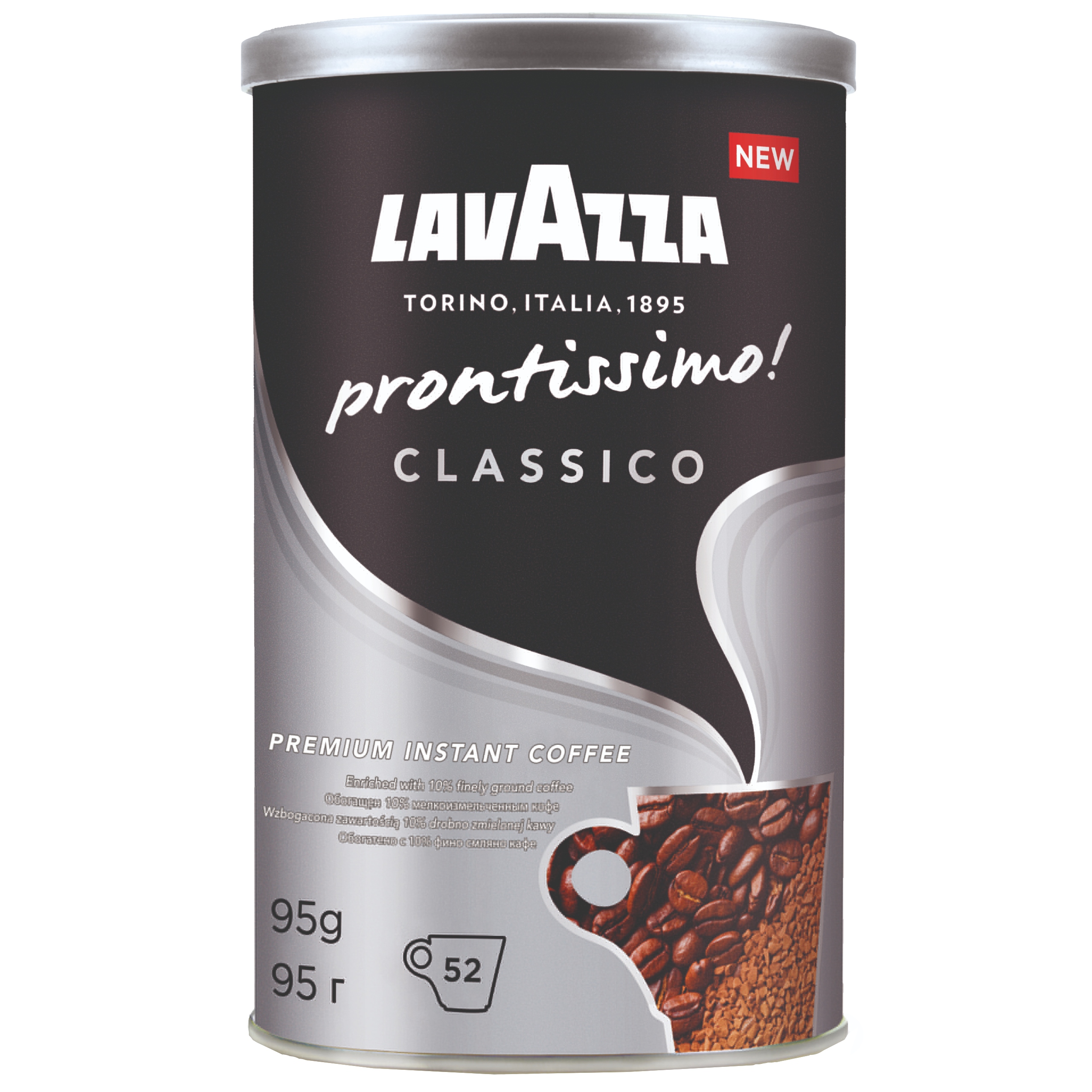 Prontissimo Classico - це високоякісна розчинна кава, вироблена відомою італійською обсмажувальною фабрикою Lavazza. Кава виготовляється із 100% зерен арабіки, а 10% – це кава дрібного помелу (так звані мікрогранули).