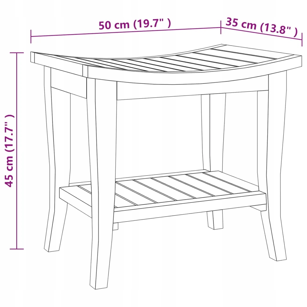 Лавка для ванної кімнати, 50х35х45 см, масив тика