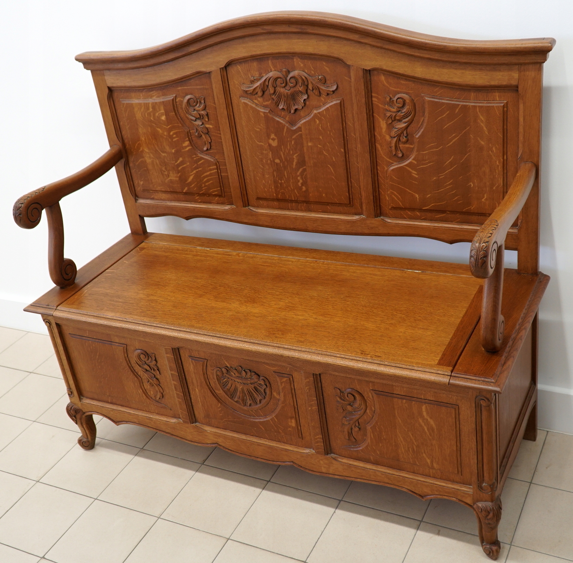 Лудвіковський багажник, стильна скриня, лавка, виготовлена ​​в дубі. Він ідеально впишеться в будь -який інтер'єр. Вік близько 50 років. Походження Західна Європа.