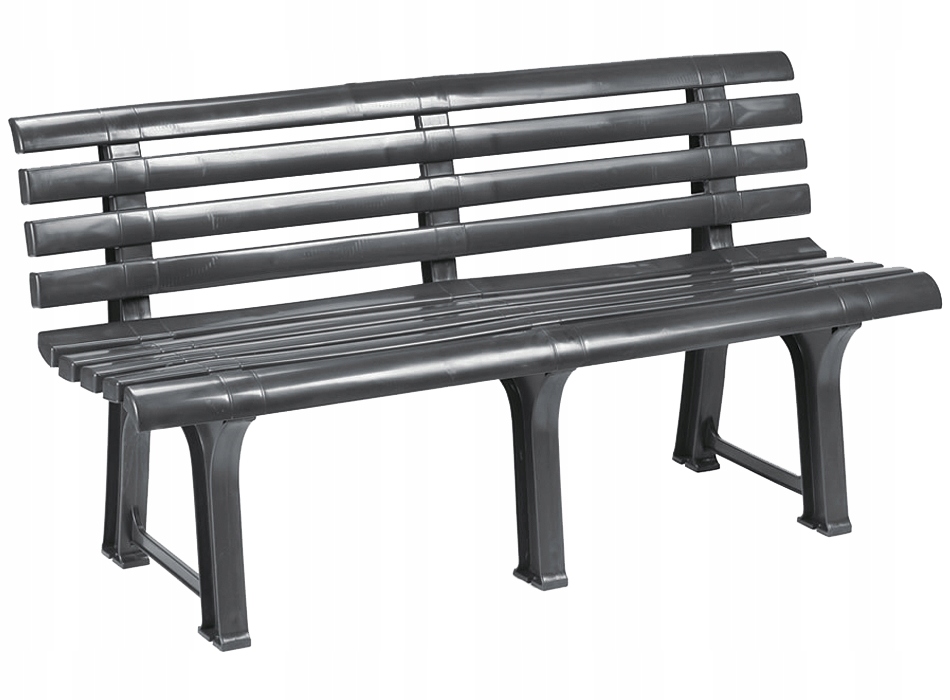 ЛАВКА САДОВА З ПЛАСТИКУ СПИНКА СТІЙКИЙ ЦІЛЬНИЙ ПЛАСТ 146см АНТРАЦИТ