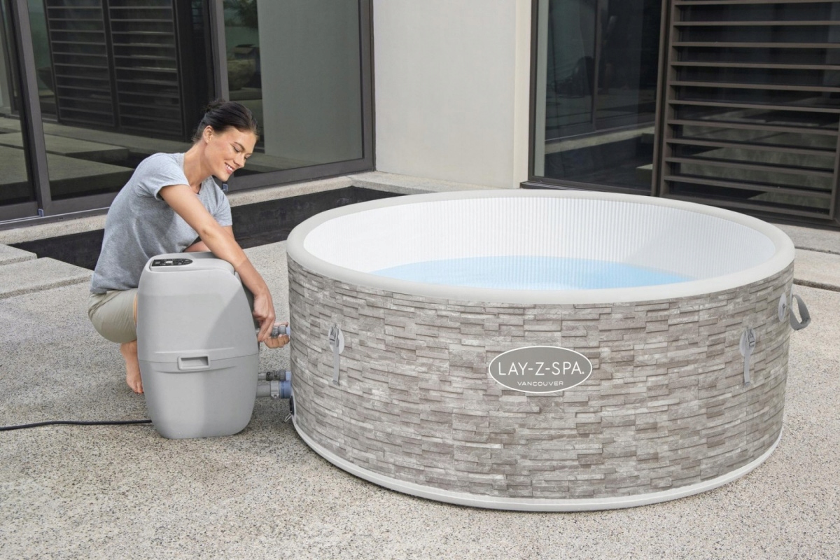 Джакузі Lay-Z-Spa Vancouver оснащено сучасними надувними стінами, виготовленими з перевіреного матеріалу з крапельним швом. Це міцне і армоване волокно, з’єднане міцними волокнами, які не викликають деформації всієї конструкції. Стінки стійкі до УФ-променів і зберігають свою форму при багаторазовому наповненні та спорожненні резервуара водою. Крім того, джакузі характеризується сучасним дизайном, швидким і легким монтажем, а також надувається ручним насосом, який входить в комплект.