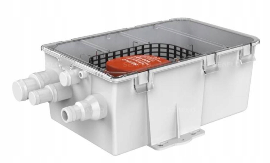 Душова колодязь Seaflo дозволяє отримувати воду з трьох різних джерел - душів, умивальників і т.д. Він безумовно підходить для використання в кемперах, човнах, наділах або кемпінгах.