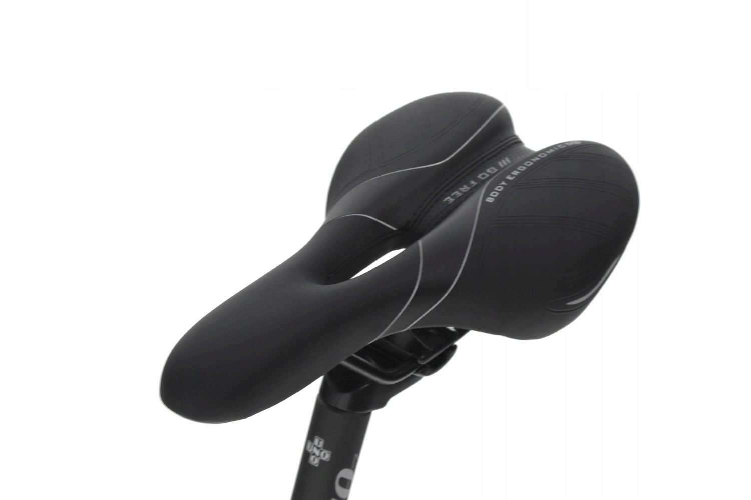 Зручне спортивне сідло. Кріпиться до алюмінієвого підсідельного штиря Kalloy Uno за допомогою вбудованого хомута, який дозволяє встановлювати кут нахилу, а також переміщати сідло в бік керма.