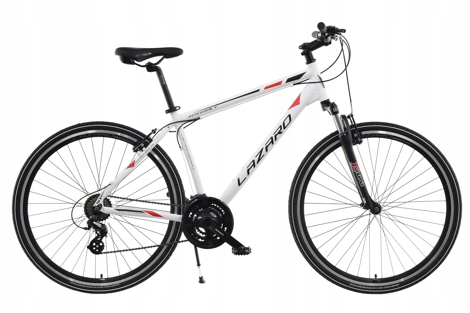 Велосипед Lazaro INTEGRAL V1 — це модель кросу, тобто поєднання універсальності та геометрії трекінгового велосипеда та більш агресивного стилю гірських велосипедів. Ця модель дебютувала в 2009 році. Це було оцінено широким колом задоволених велосипедистів. Це буде хорошим вибором для людей, які цінують універсальність і комфортність пересування в міських умовах і поїздках за місто по грунтових дорогах. Легка і міцна алюмінієва рама з геометрією, що дозволяє прийняти зручне положення. Великі алюмінієві колеса діаметром 28 дюймів на міцних двокамерних дисках KANDS TECH (з високим конусом 30 мм!) і міцними втулками. Шини з дорожнім і гравійним протектором добре працюватимуть на асфальтованих поверхнях і бічних дорогах. Рама має різьблення для кріплення аксесуарів, таких як: бризковики, пляшка з водою, стійка. Фірмові компоненти приводу від Shimano забезпечать тривалу та безвідмовну роботу та безпроблемне перемикання передач. Ефективні гальма V-Brake дають вам відчуття безпеки та контролю під час подорожі. Якщо ви шукаєте універсальне обладнання з репутацією та, крім того, дуже хорошим співвідношенням ціна-якість, кросовий велосипед Lazaro є одним із варіантів для вас.