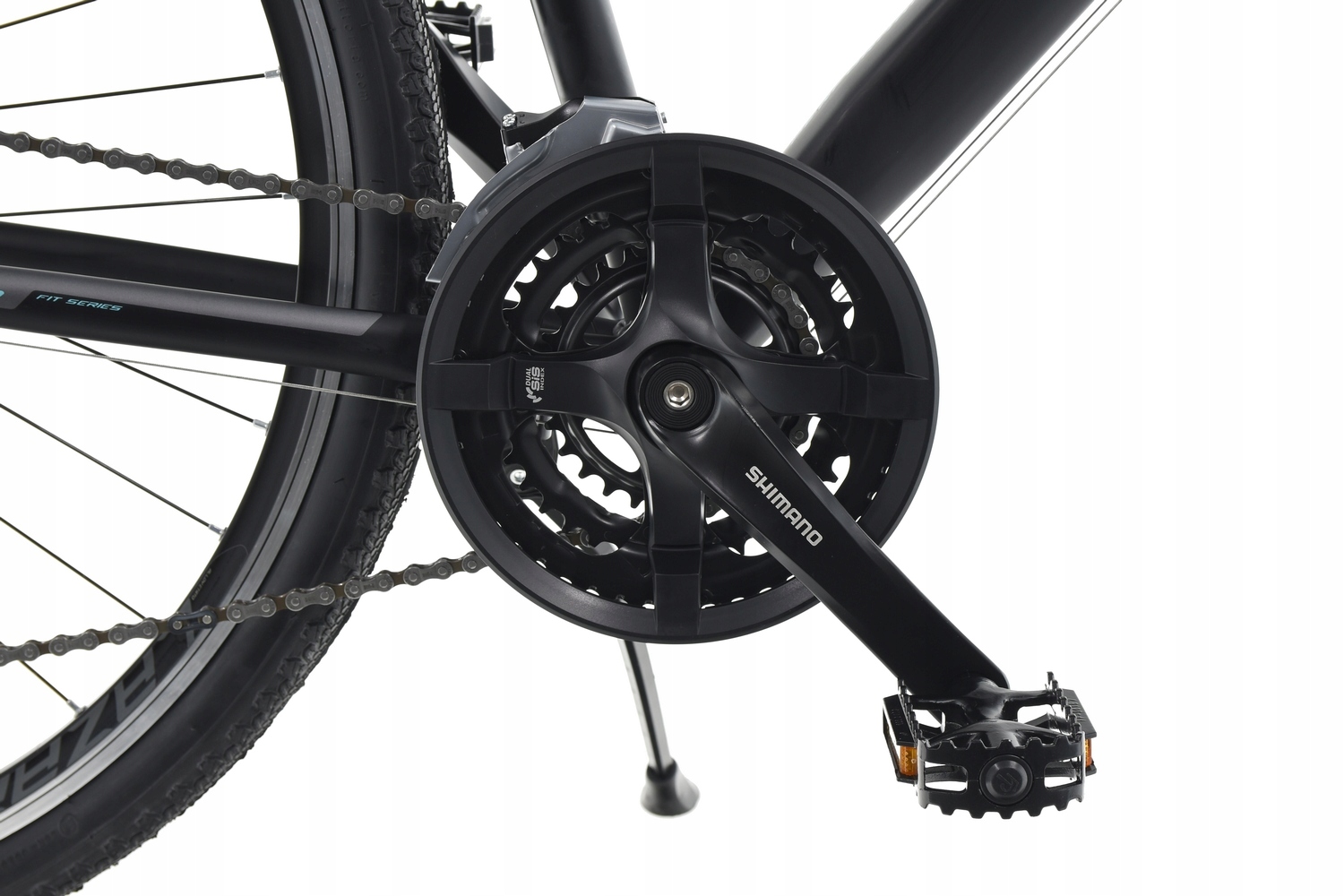 Надійний алюмінієвий шатун SHIMANO FC-TY501 із довжиною плеча 170 мм. Оснащений трьома зірочками з числом зубів 48/38/28 для найнижчої зірочки, що забезпечує відповідну лінію роботи ланцюга. Призначений для приводів 3x8 і плавного та надійного перемикання передач завдяки системі DUAL SIS. Зірочки, виготовлені за технологією HYPERGLIDE.