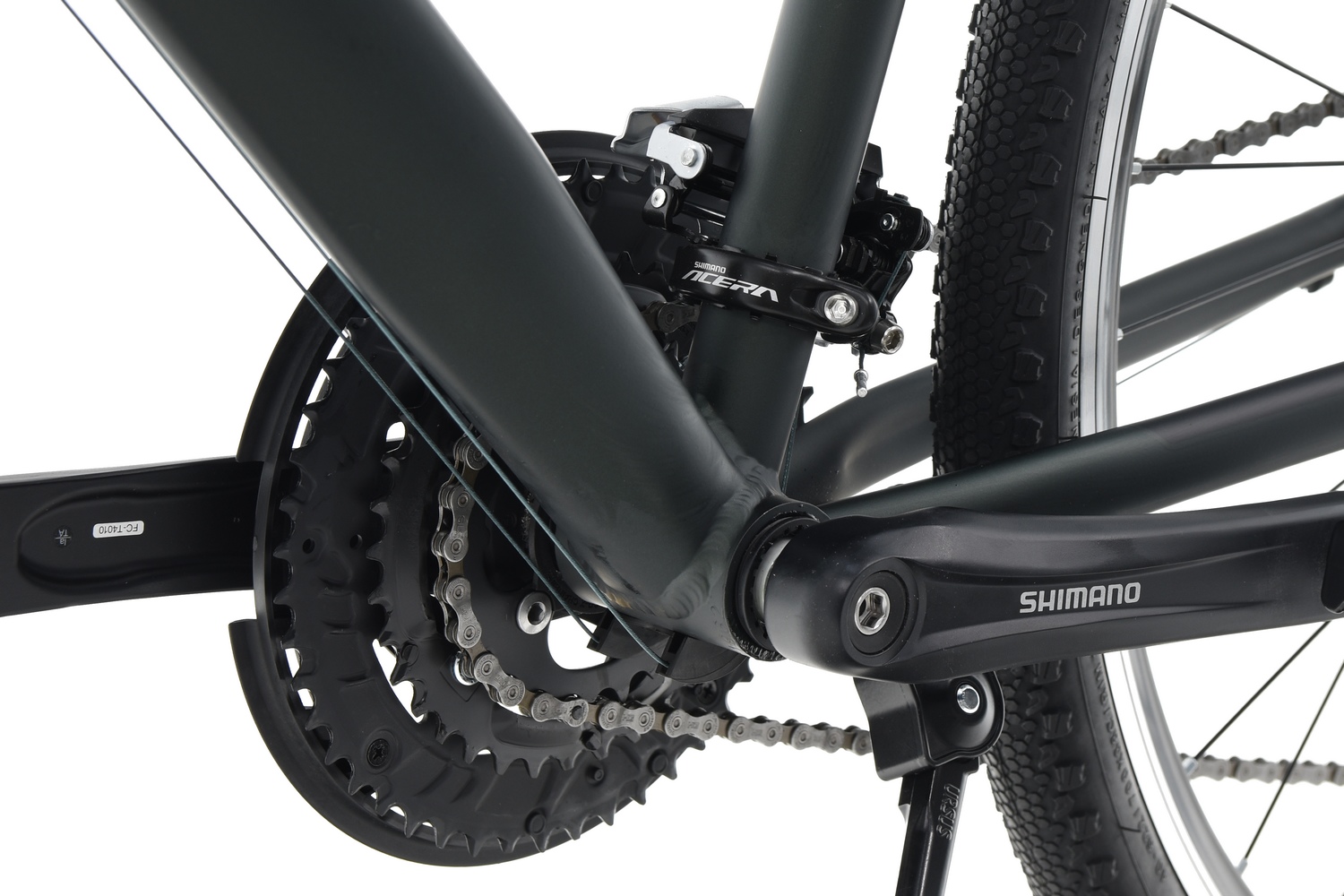 Надійний алюмінієвий шатун SHIMANO FC-TY4010 із довжиною плеча 175 мм. Оснащений трьома зірочками з числом зубів 48/36/26 для найнижчої зірочки, що забезпечує відповідну лінію роботи ланцюга. Призначений для приводів 3x9 і плавного та надійного перемикання передач на складній місцевості завдяки системі HyperDrive. Використана вставка Shimano Octalink. Для порівняння: потужність, що передається на 8-шліцеву вставку OCTALINK зі звичайними квадратними шліцями, збільшує жорсткість усієї конструкції.
