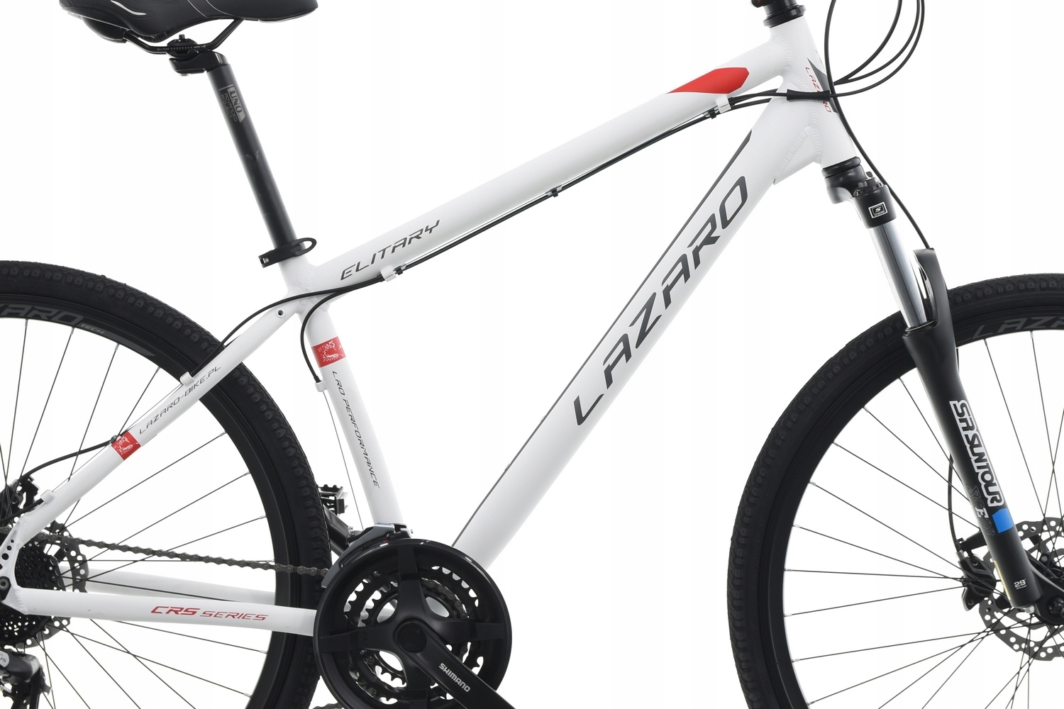 Велосипед Lazaro Elite V1 — це кросова модель, тобто поєднання універсальності та геометрії трекінгового велосипеда та більш агресивного стилю гірських велосипедів. Це буде хорошим вибором для людей, які цінують універсальність і комфортність пересування в міських умовах і поїздках за місто по грунтових дорогах. Легка і міцна алюмінієва рама з геометрією, що дозволяє прийняти зручне положення. Великі алюмінієві колеса діаметром 28 дюймів на міцних двокамерних дисках KANDS TECH (з високим конусом 30 мм!) і втулками SHIMANO. Шини з дорожнім і гравійним протектором добре працюватимуть на асфальтованих поверхнях і бічних дорогах. Рама має різьблення для кріплення аксесуарів, таких як: бризковики, пляшка з водою, стійка. Фірмові компоненти приводу від Shimano забезпечать тривалу та безвідмовну роботу та безпроблемне перемикання передач. Ефективні та потужні гідравлічні гальма Shimano дають вам відчуття безпеки та контролю під час подорожі. Якщо ви шукаєте універсальне обладнання з репутацією та, крім того, дуже хорошим співвідношенням ціна-якість, кросовий велосипед Lazaro є одним із варіантів для вас.
