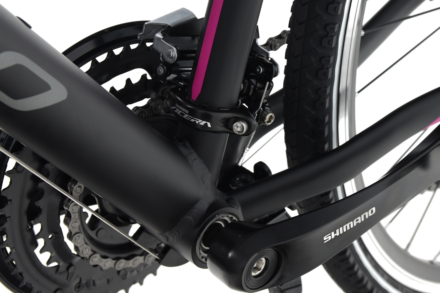 Передній перемикач Shimano ACERA, оснащений суцільною напрямною ланцюга та технологією TOP SWING, що забезпечує більшу жорсткість, зберігаючи швидкість і легкість перемикання.