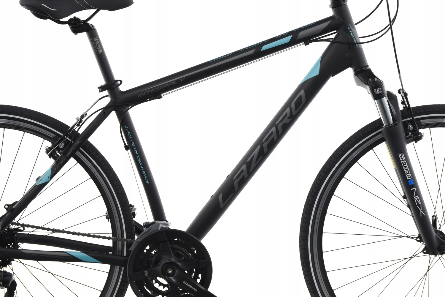 Велосипед Lazaro INTEGRAL V2 — це модель кросу, тобто поєднання універсальності та геометрії трекінгового велосипеда та більш агресивного стилю гірських велосипедів. Ця модель дебютувала в 2009 році. Його оцінила велика група задоволених велосипедистів. Це буде хорошим вибором для людей, які цінують універсальність і комфортність пересування в міських умовах і поїздках за місто по грунтових дорогах. Легка і міцна алюмінієва рама з геометрією, що дозволяє прийняти зручне положення. Великі алюмінієві колеса діаметром 28 дюймів на міцних двокамерних ободах KANDS TECH (з високим конусом 25 мм!) і втулках LRO з картриджними підшипниками. Шини з дорожнім і гравійним протектором добре працюватимуть на асфальтованих поверхнях і бічних дорогах. Рама має різьблення для кріплення аксесуарів, таких як: бризковики, пляшка з водою, стійка. Фірмові компоненти приводу від Shimano забезпечать тривалу та безвідмовну роботу та безпроблемне перемикання передач. Ефективні V-Brake дають вам відчуття безпеки та контролю під час подорожі. Якщо ви шукаєте універсальне обладнання з репутацією та, крім того, дуже хорошим співвідношенням ціна-якість, кросовий велосипед Lazaro є одним із варіантів для вас.