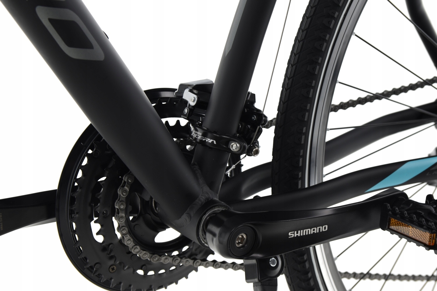 Передній перемикач Shimano ACERA, оснащений суцільною напрямною ланцюга та технологією TOP SWING, що забезпечує більшу жорсткість, зберігаючи швидкість і легкість перемикання.