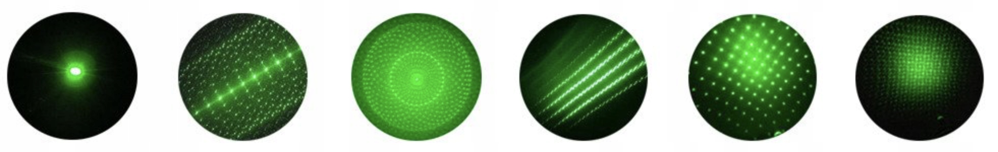 • Лазер має потужний зелений лазерний промінь (точку) і 12 магічних підказок, які можна змінити, пригвинтивши їх до лазерної головки