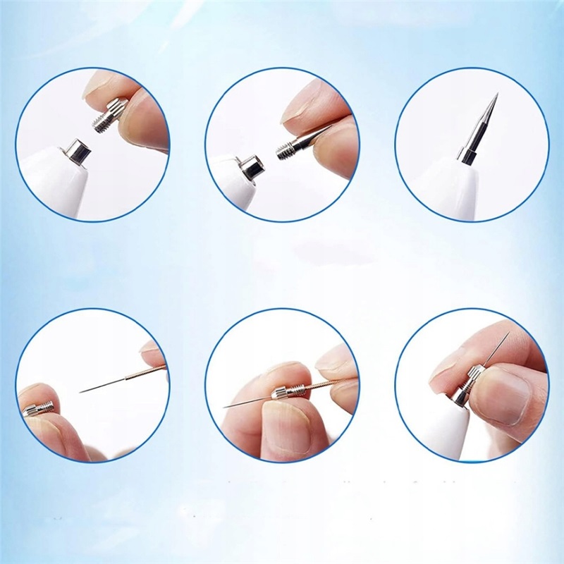 Для ручки для видалення родимок просто виберіть відповідну голку та прикріпіть її до кінчика ручки. Щоб увімкнути ручку, натисніть і утримуйте кнопку ON/OFF. на 3 секунди. Натисніть кнопку ON/OFF, щоб змінити рівень швидкості. Щоб почати роботу, натисніть і утримуйте кнопку OUT. Відпустіть, щоб припинити роботу. Після використання вимкніть ручку, натиснувши та утримуючи кнопку живлення протягом 3 секунд. РК-екран вимкнеться.
