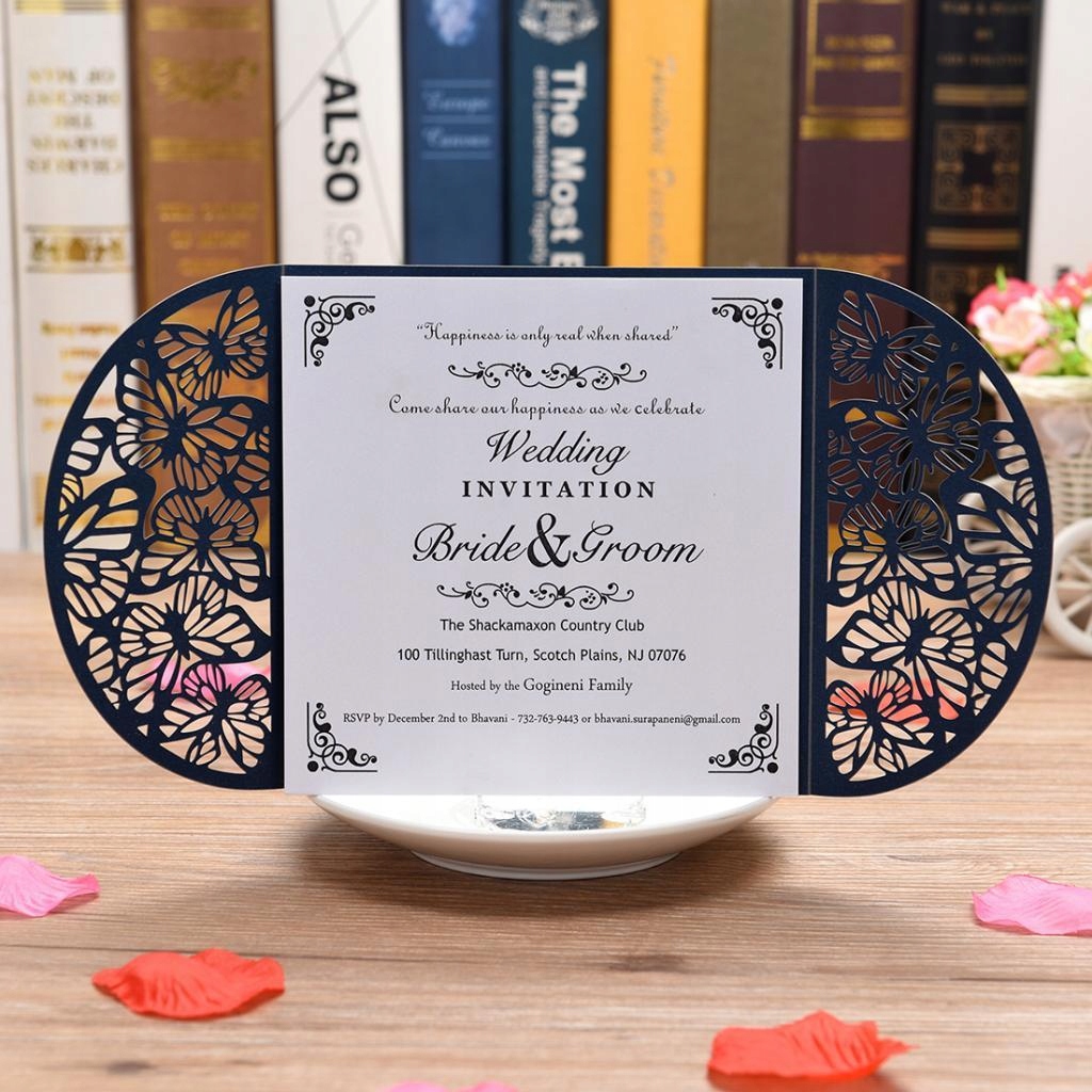Лазерне вирізання запрошень на весілля синього кольору