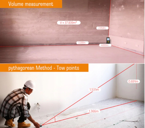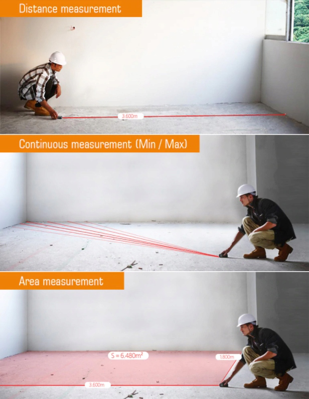 Можливість вимірювання від переднього краю пристрою або від заднього, враховуючи довжину приладу, завдяки цьому ми можемо поставити далекомір біля стіни