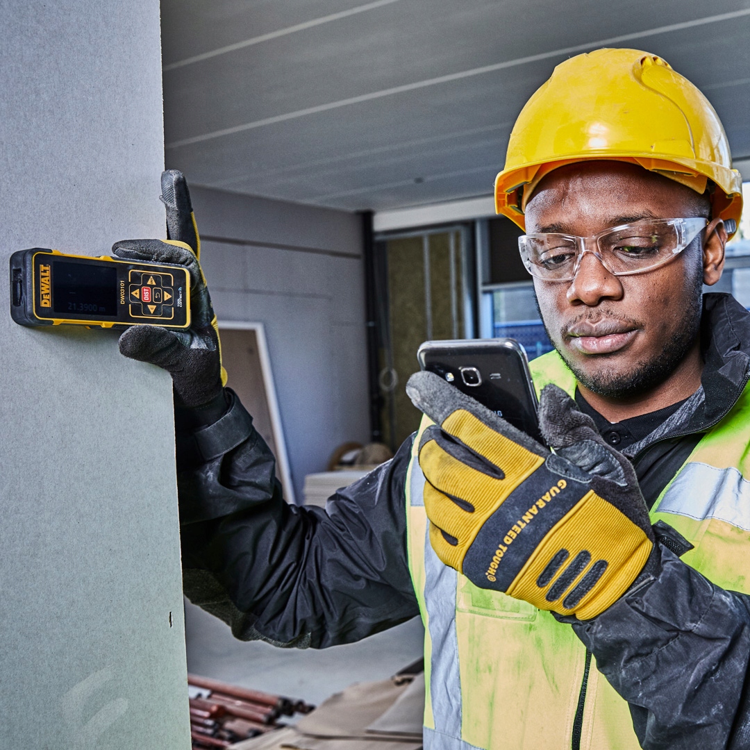 Лазерний далекомір DW03101 DEWALT розроблений для найскладніших умов роботи на будівельному майданчику - його корпус захищає його від ударів і падінь на бетон з висоти до 2 метрів. Корпус має клас герметичності IP 65 і захищає від проникнення води і пилу всередину. Діапазон до 100 м з точністю +/- 1 мм/м забезпечує високу точність вимірювань. Прилад має типові функції вимірювання, які підвищують швидкість і точність порівняно з традиційними інструментами вимірювання, наприклад вимірювання відстані, обчислення площі поверхні та обчислення об’єму. Додавання та віднімання вимірювань разом із зчитуванням результатів виконується в метричній або імперській системі.