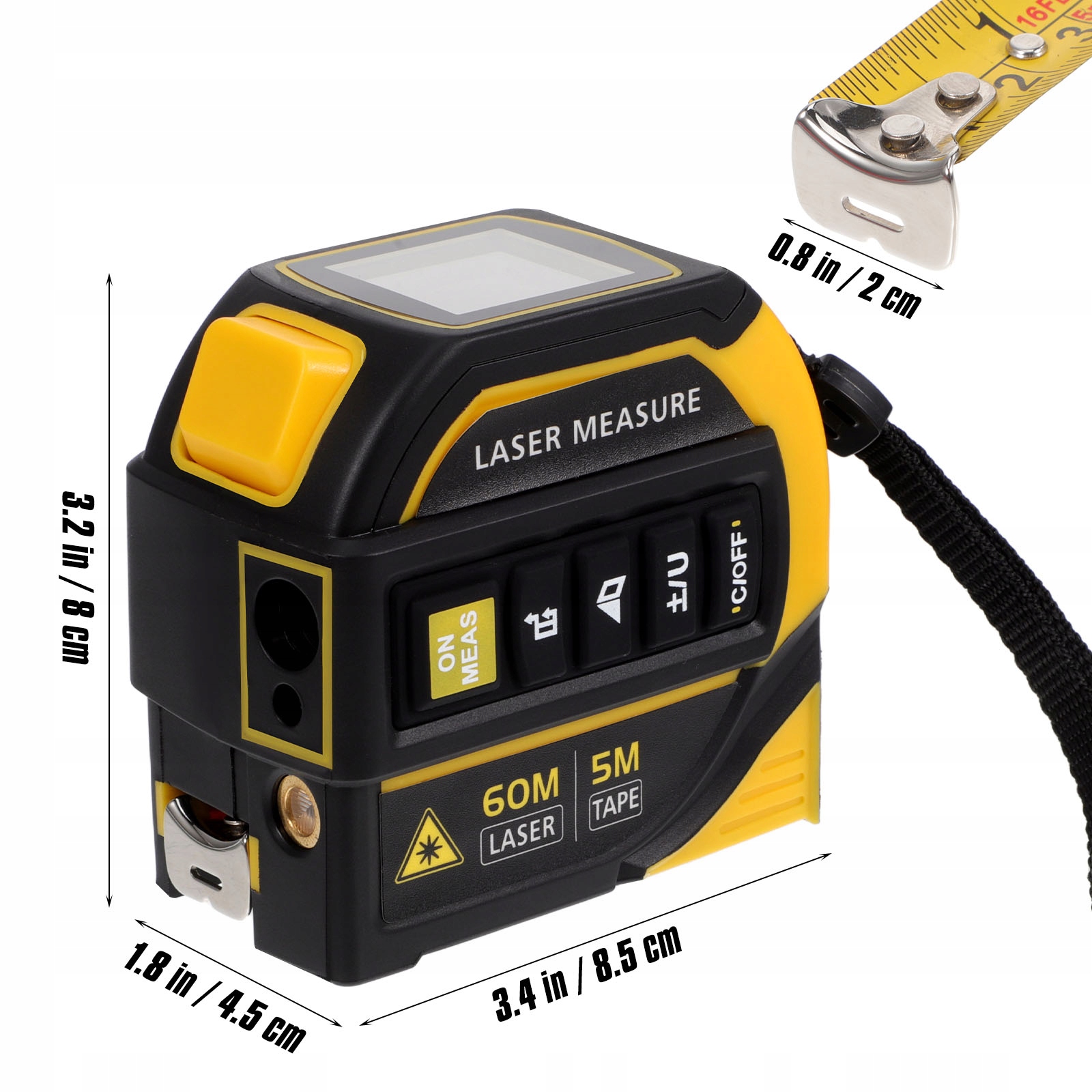 ЛАЗЕРНИЙ ДАЛЕКОМІР 60 М ДАЛЕКОМІР З РОЗШИРЮЄМОЮ ВИМІРНОЮ СТРІЧКОЮ 5 М