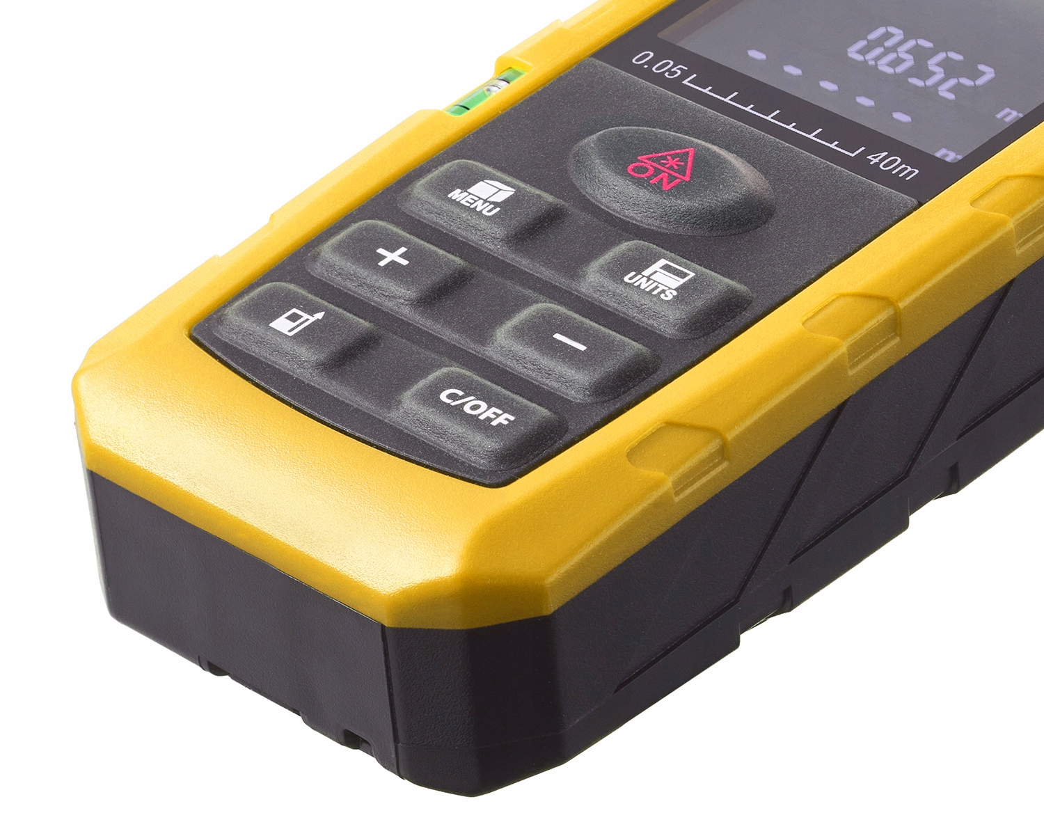 Дозволяє вимірювати відстані від 0,05 до 50 м, а точність вимірювання становить +/- 1,5 мм. Крім того, він має функцію вимірювання поверхні вимірюваного об'єкта, його об'єму та висоти. b>