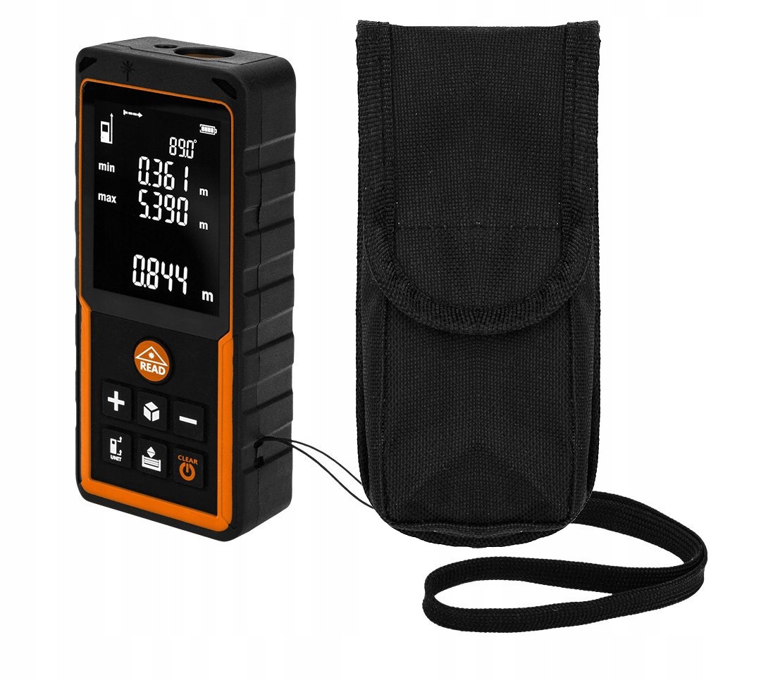 - Functions: measurement of distance, surface area, volume, continuous measurement, Pythagoras, addition and subtraction, maximum and minimum measurement, ability to measure from the beginning and end of the device, electronic protractor 0-90 degrees