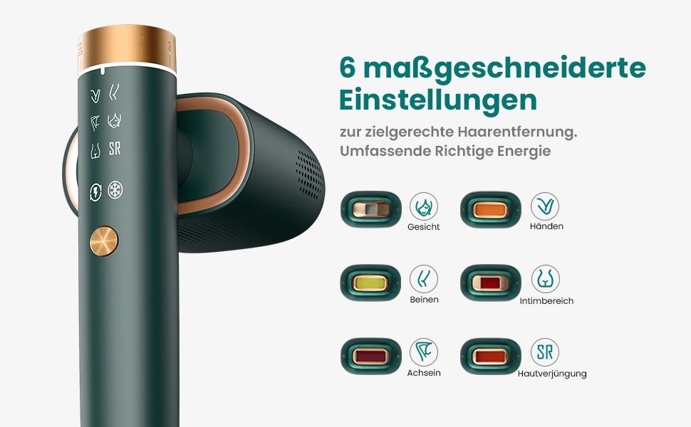 На основі багатьох років досліджень та понад десять тисяч шкірних тестів Джовс заявив, що різні частини тіла мають різні допуски споживання тепла та енергії. Ось чому Jovs Venus Pro пропонує шість налаштувань для кожної частини тіла. Завдяки змінам енергії, які досягають діапазону Юла/см², кожна установка визначає рівень енергії, необхідного для кожної частини тіла.
