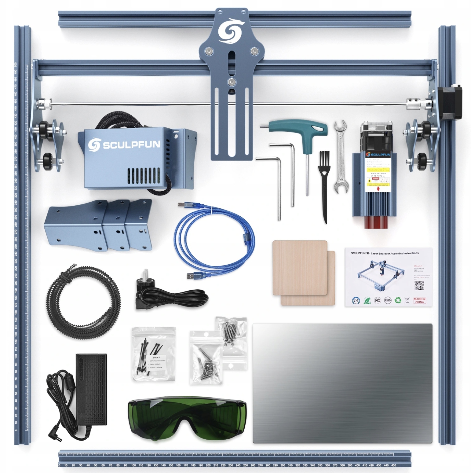 Новий лазерний гравірувальний верстат SCULPFUN S9. Технологія надтонкого лазерного формування променя. Точний акриловий лазерний різальний верстат для деревини. Зона гравірування 410x420 мм. Повністю металева конструкція. Конструкція швидкого складання.
