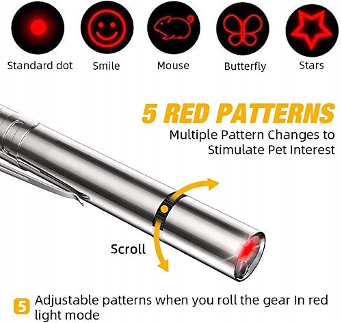Іграшка включає котів і собак, які люблять переслідувати лазер, забезпечуючи активність, запобігання ожирінням та поліпшення настрою.