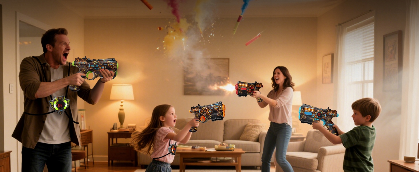 - ⭐Цей перезаряджуваний набір для лазерних тегів включає 4 пістолети та 4 жилети, ідеально підходить для дітей, підлітків і дорослих у віці 6-12+.