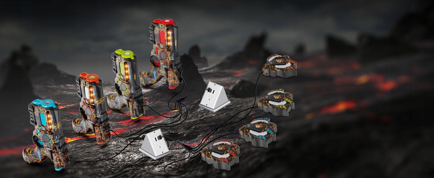 - ⭐Акумуляторні лазерні пістолети та жилети постачаються із зарядним кабелем 4-в-1, що дозволяє заряджати все ваше обладнання одночасно.