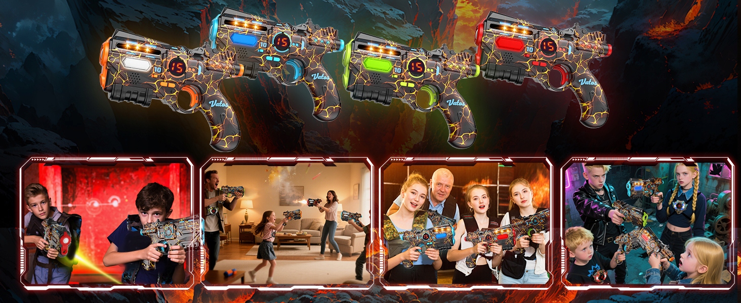 Набір лазерної зброї VATOS для 4 гравців - 2,4 ГГц, повна синхронізація даних, 4 рушниці та 4 датчики на жилеті - круті іграшки та ідеї для дня народження, лазерні рушниці для дітей, підлітків і дорослих для сімейного відпочинку.