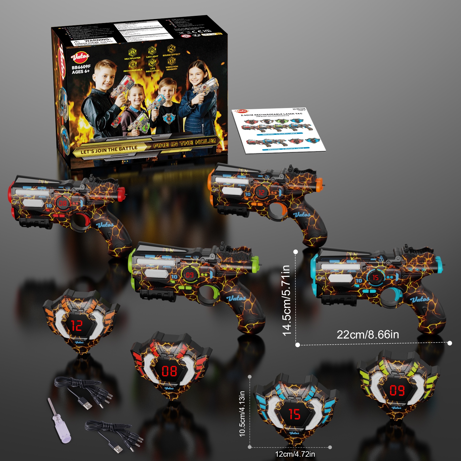 - Приготуйтеся до годин адреналіну з акумуляторним набором лазерних маркерів VATOS! Розраховано на дітей, підлітків і дорослих віком від 6 до 12 років.