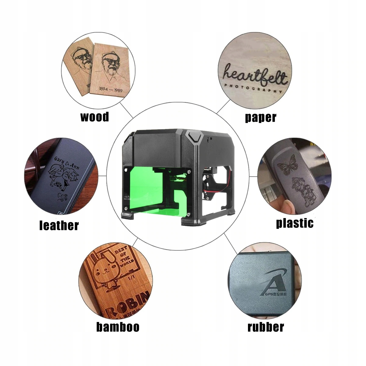Лазерний гравер WOLIKE – це комбінація лазерної технології та принтера. Керований комп’ютером, він гравірує (випалює) різні матеріали: дерево, бамбук, щільний папір, пластик, гуму, шкіру, пофарбований метал, PCBA, паперові картки , слонова кістка, червоне дерево, ріже тонкий папір.