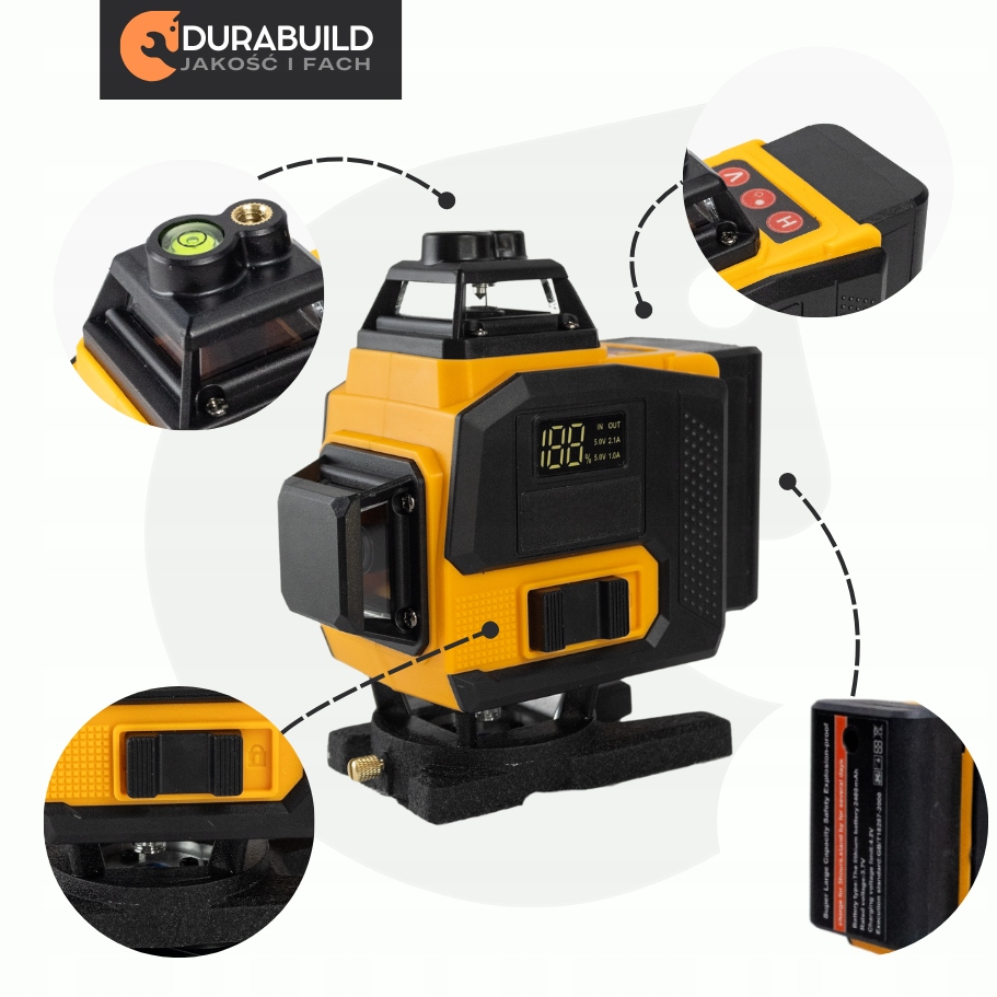 ✔ Автоматичне вирівнювання - економить час та усуває помилки в конфігурації пристрою. Водяна стійкість та пилозахисна (IP54): Пристрій надійно працює у складних умовах будівництва.