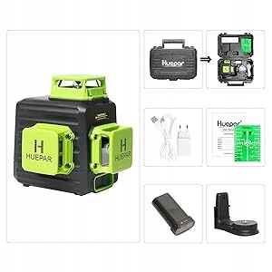 Зелений лазерний рівень, Huepar 3x360 з літій-іонним акумулятором, лазерний рівень із самовирівнюванням, зарядний порт Type-C і жорсткий футляр у комплекті – B03CG Pro