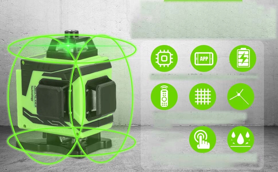 ⏩⏩thing, використовуючи застосування/пульт дистанційного керування: Зелений лазерний рівень має вдосконалену лазерну головку, зелений промінь, більша яскравість і чітко видно як всередині, так і зовні. Ви можете завантажити додаток або використовувати дистанційне керування (примітка: діапазон пілота - 10 м) для управління роботою пристрою лазерного вирівнювання та вибрати інтенсивність лазерного світла.
