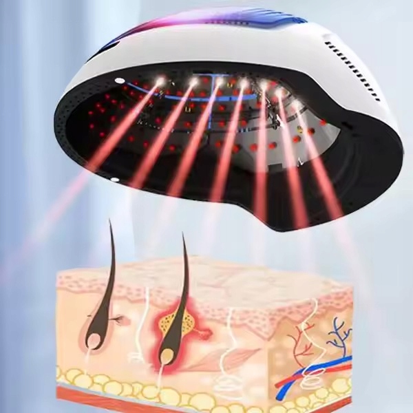 Шолом LLLT працює, піддаючи тканини низькому рівню ближнього інфрачервоного видимого світла. Під час впливу лазерне світло проникає у волосяні фолікули, знищує потенційні бактерії, регулює роботу сальних залоз, зменшує виділення шкірного сала та підвищує активність волосяних фолікулів. Лазерні промені LLLT збільшують кількість введеного кисню та поживних речовин. Завдяки роботі низькоенергетичного лазера 650 нм енергія проникає глибоко в підшкірні клітини, генерує фотони, які забезпечують енергією мітохондрії волосяних фолікулів, дають змогу клітинам фолікулів виробляти необхідний pH 7,1, підвищують поглинальну здатність гемоглобіну в крові та його здатність переносити кисень, покращують кровообіг, зменшують атрофію фолікулів. викликаний недостатнім кровопостачанням, розчиняє шкірне сало в фолікулах, зменшує виділення жиру, знищує бактерії глибоко в фолікулі, очищає сальні залози, підвищує активність фолікулів і підтримує їх функцію відновлення.