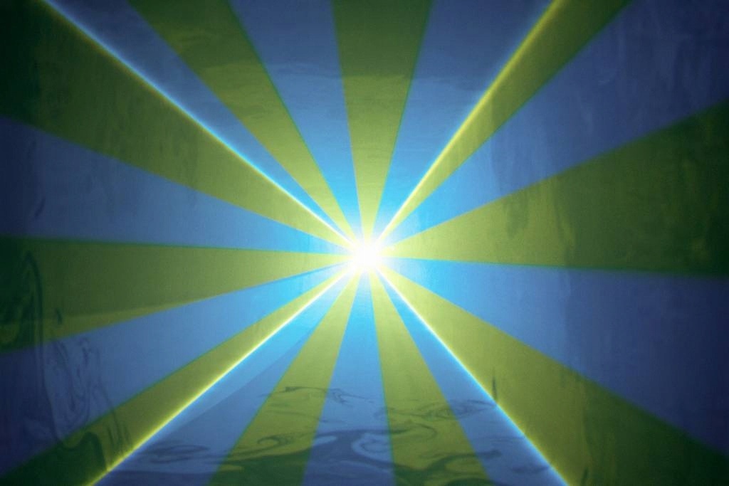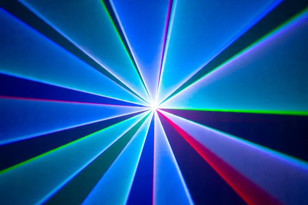 Червоний діодний лазерний модуль з довжиною хвилі 650 нм, зеленим лазерним модулем DPSS з довжиною хвилі 532 нм та королівським блакитним лазерним модулем з довжиною хвилі 445 нм забезпечують красиві кольори та легкі промені. Ці пучки мають діаметр близько 3 мм і розбіжність пакету з 2 файлів. Лазерна система має 15 кпс @ 8 ° для створення різних конструкцій. Ефекти можна керувати DMX. Також доступні режим звуку до світла та автономний режим. У режимі Sound-Light можна регулювати чутливість інтегрованого мікрофона. 4