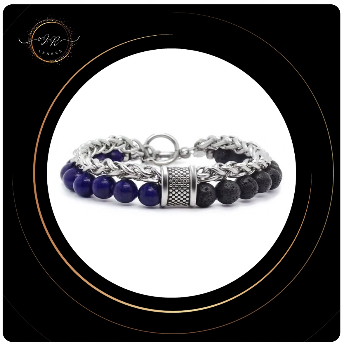 УНІСЕКС БРАСЛЕТ LAPIS LAZULI LAWA НЕРЖАВІЮЧА СТАЛЬ