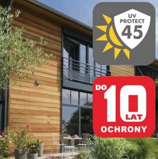 Фільтр UV Protect 45 захищає деревину від сонячного випромінювання в 45 разів довше, ніж продукти без фільтра. Завдяки технології AQUA-BLOCK покриття стійке до опадів та вологи.