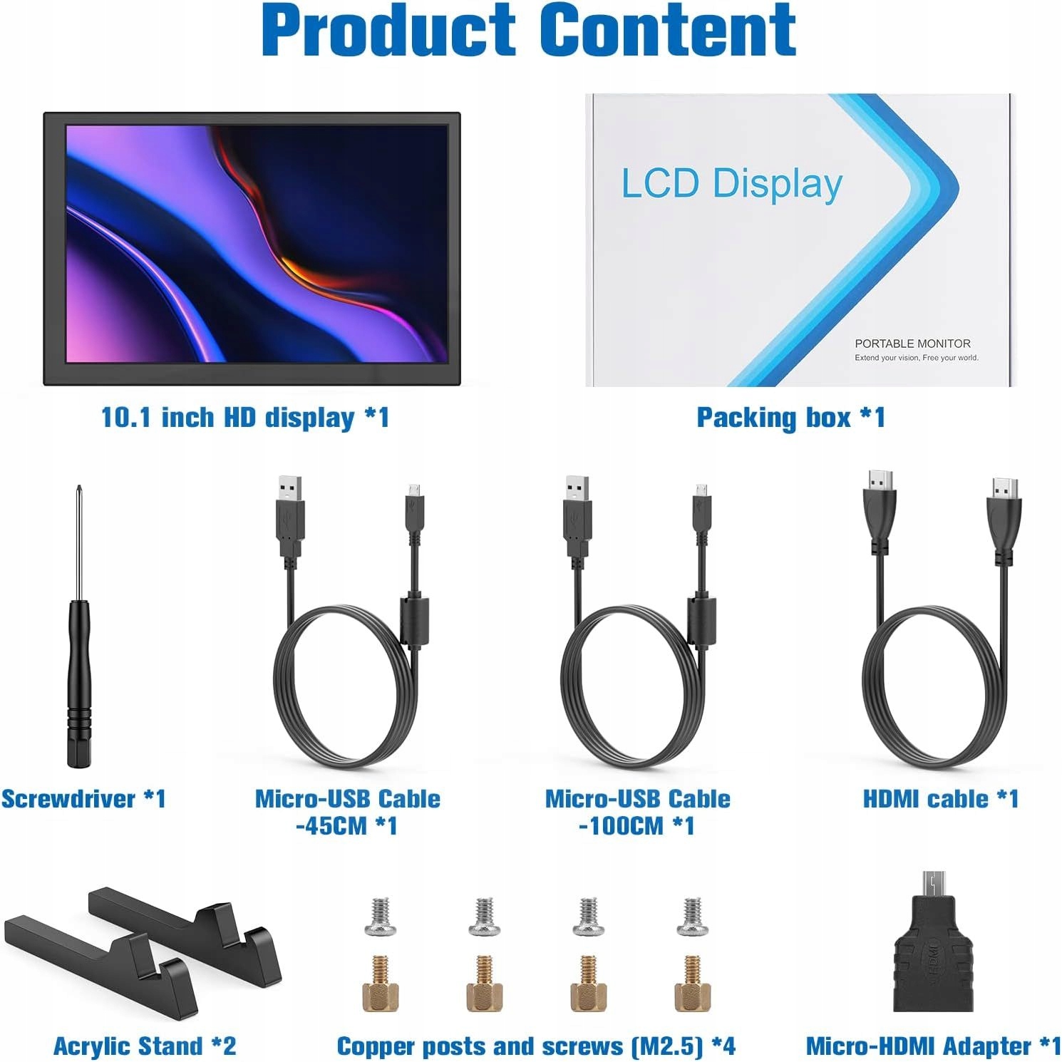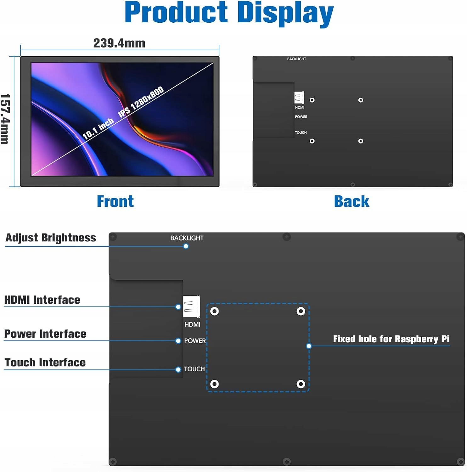LCD 10.1 1280 x 800 IPS, HDMI do Raspberry Pi 4/3b+ Win7/8/10/11