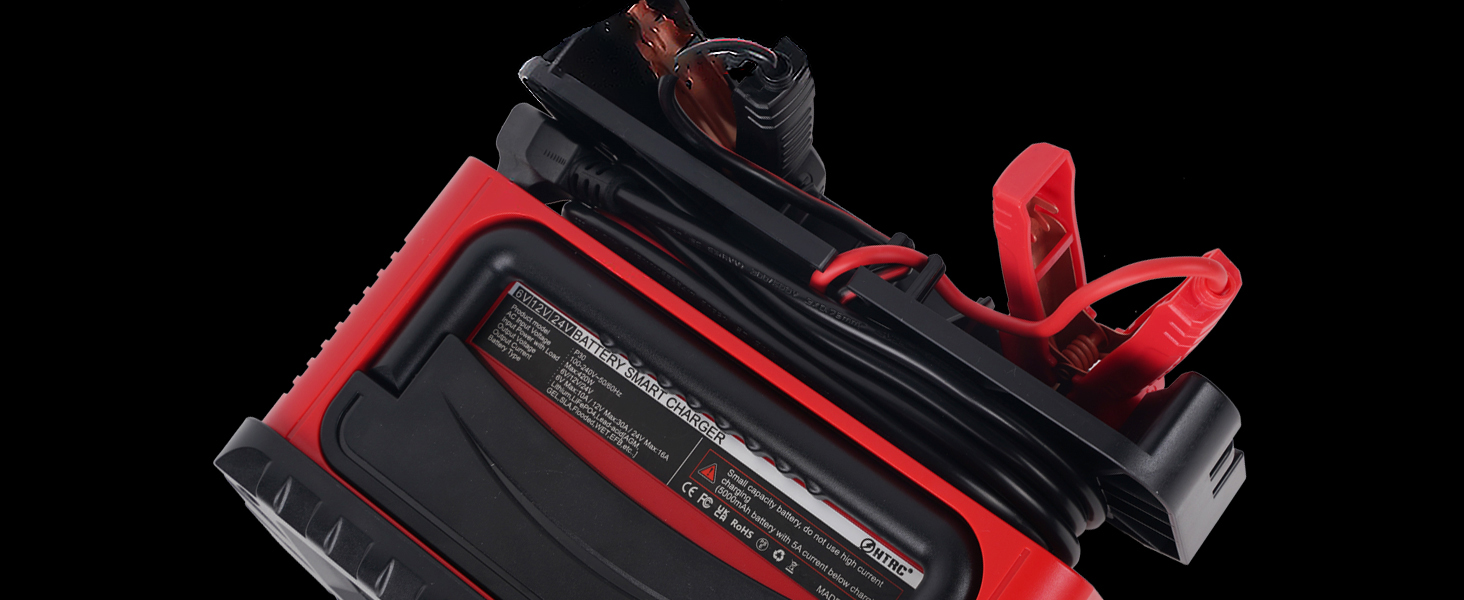 ?Широке застосування?Зарядний пристрій використовується лише для батарей LifePo4 6 В/12 В/24 В, літієвих батарей і свинцево-кислотних батарей (AGM, кальцієвих, гелевих, MF, EFB, SLA, VRLA, вологих тощо). Його часто використовують для використання автомобілів, мотоциклів, човнів, газонокосарок тощо.