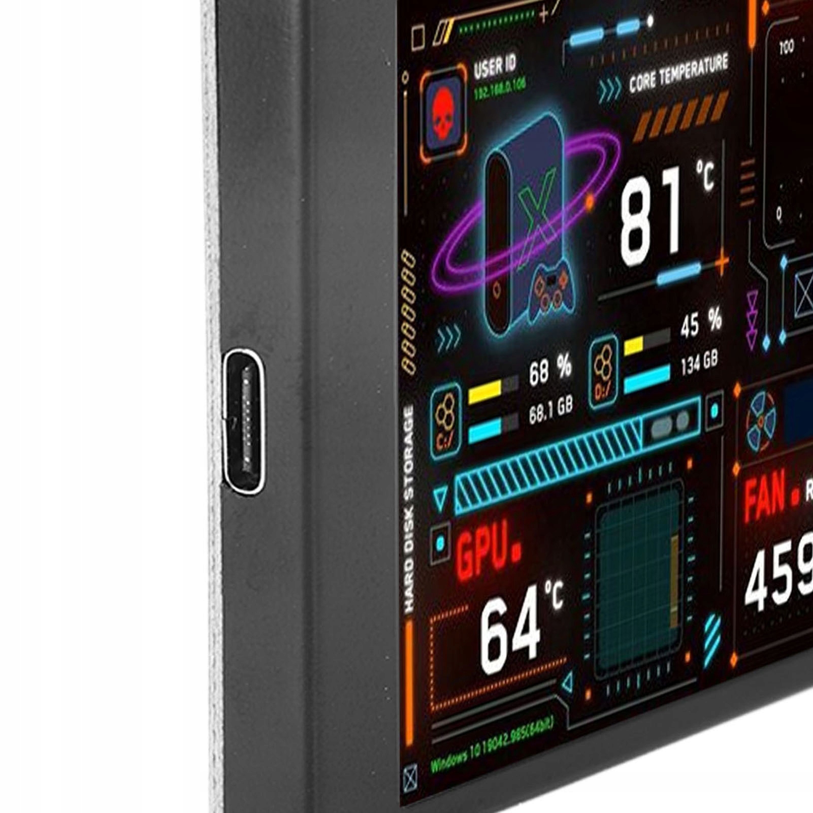 2. 3,5-дюймовий екран: сенсорна панель комп’ютера — це 3,5-дюймовий міні IPS-дисплей, який працює з англійською версією програмного забезпечення як «другий монітор» для відображення температури комп’ютера, процесора, графічного процесора, пам’яті, частоти кадрів і жорсткого використання диска. дані.