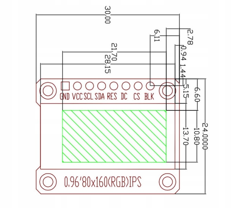 LCD TFT 0,96 "HD SPI 65K ST7735