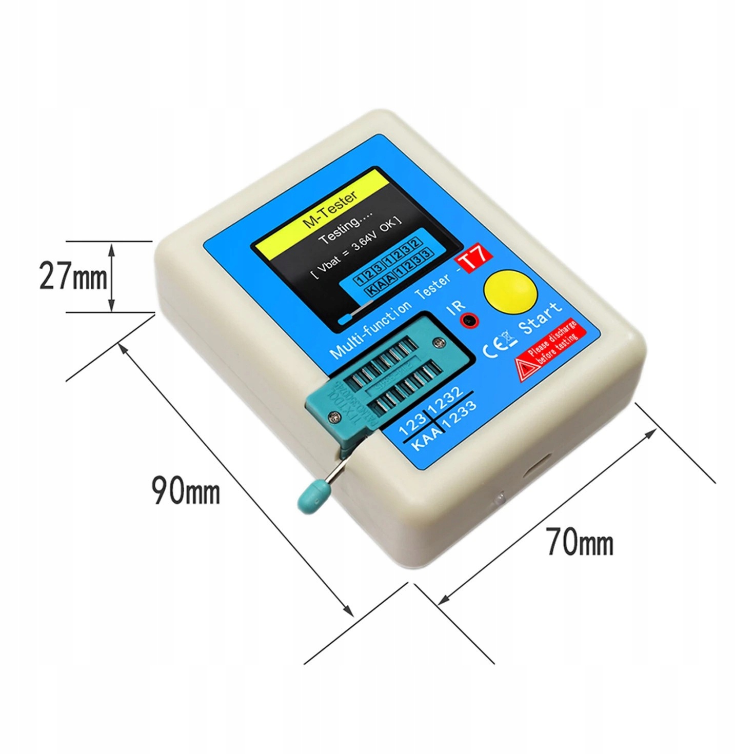 Портативний вимірювач електронних компонентів (тестер LCR). Це дозволяє тестувати загальні компоненти, що використовуються в електроніці, зокрема діоди, транзистори, конденсатори та резистори. Він дозволяє вимірювати ємність, опір і індуктивність електронних компонентів. Тестер підтримує ємності до 100 мФ, опори до 50 МОм і індуктивності до 20 Гн.