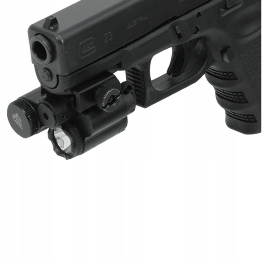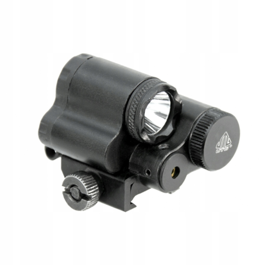 Leapers QD Sub-compact LED — компактний тактичний ліхтар зі світловим променем 120 люмен, призначений для встановлення на зброю, оснащений лазерним цілевказівником і знімним ліхтарем. гелевий перемикач.