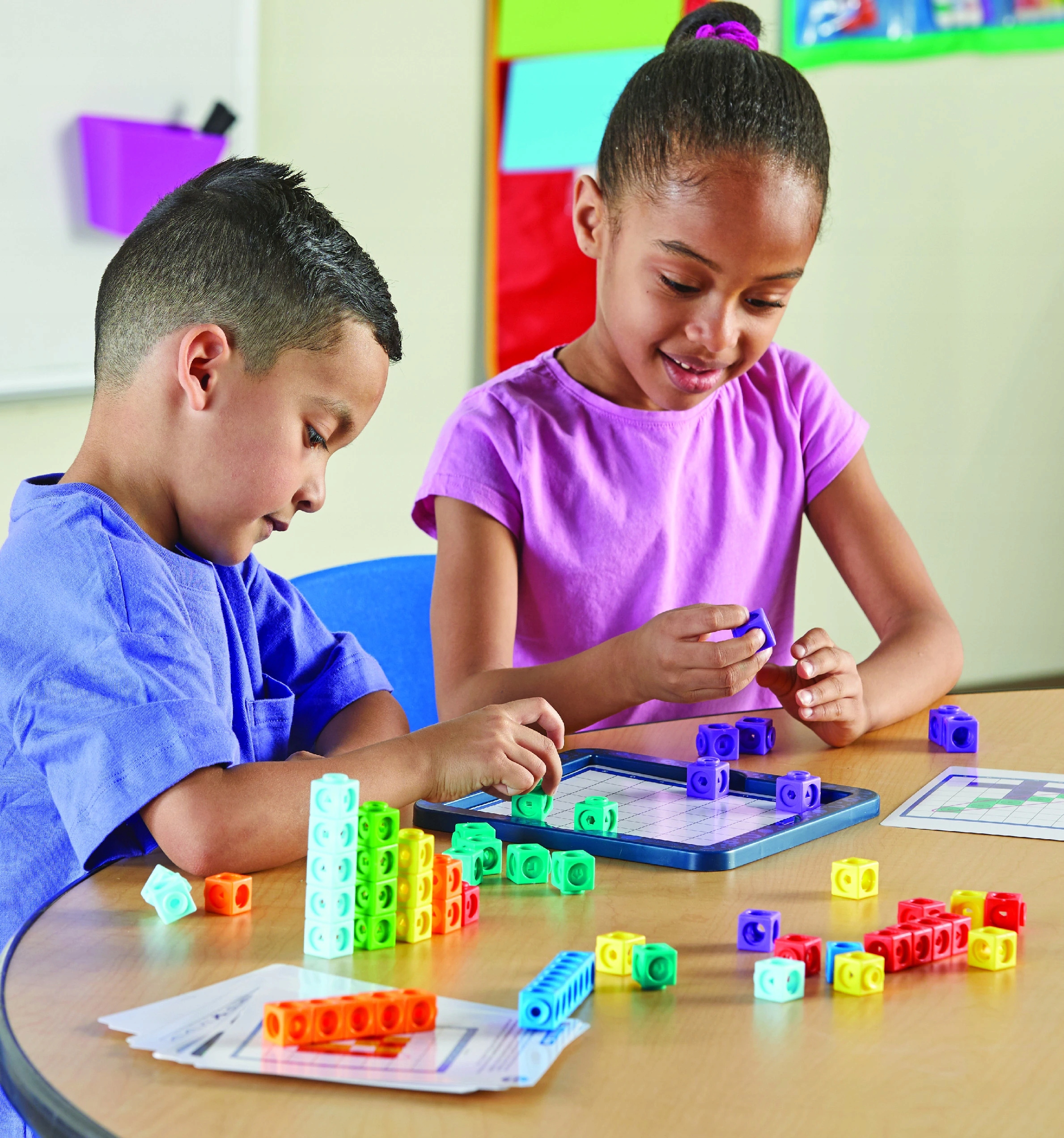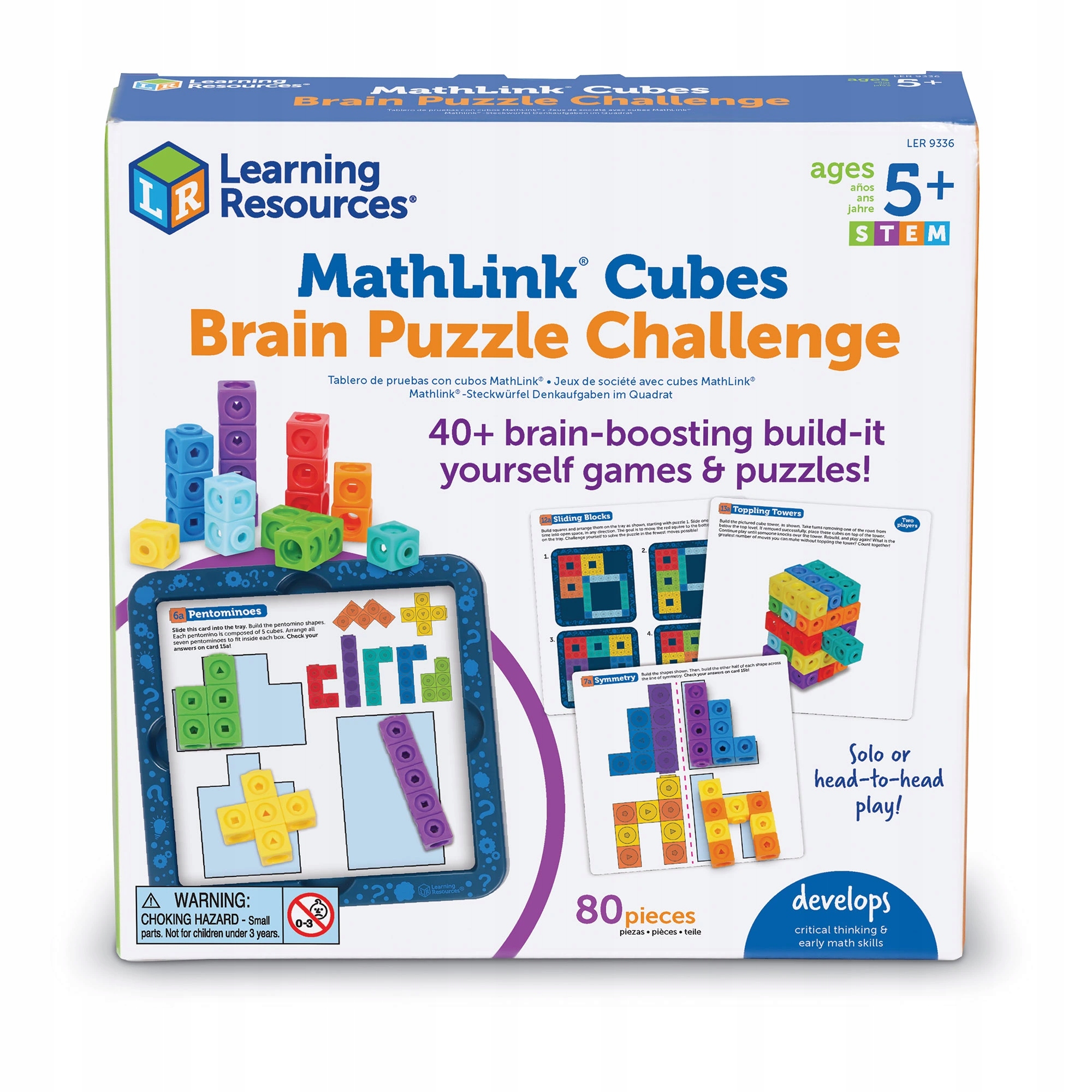 Навчальні ресурси MathLink® Cubes Brain Puzzle Challenge пропонує понад 40 оригінальних головоломок і конструкцій заняття, які заохочують дітей розв’язувати проблеми – незалежно від того, грають вони самі чи в парі.