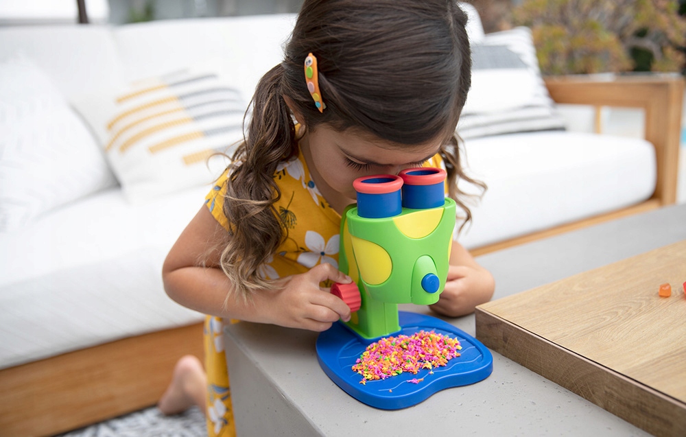 Дозвольте своїй дитині відкрити захоплюючий світ науки за допомогою мікроскопа GeoSafari Jr. Продукт створений для маленьких дослідників віком від 3 років. Користуючись мікроскопом, діти розвивають спостережливість, зосередженість і точну роботу з інструментами. Це чудовий спосіб розвинути допитливість і заохотити до самостійного дослідження та навчання. Мікроскоп також дозволяє здобувати наукові знання та вдосконалювати дрібну моторику.