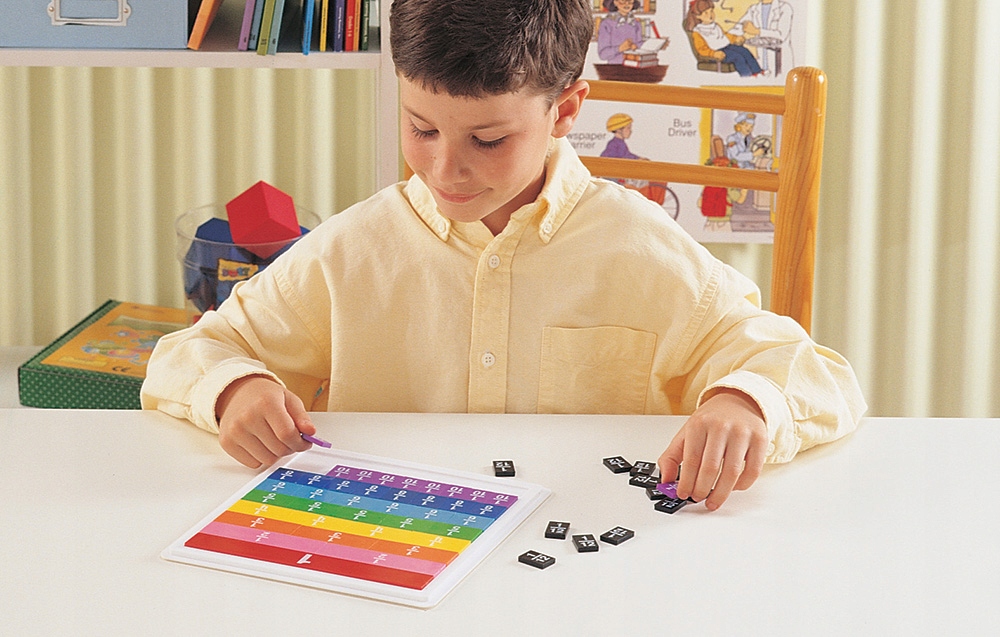 Rainbow Fraction® Tiles підходить для дітей віком від 7 років. Це стане в нагоді не лише вдома, а й у школі, а діти можуть виконувати вправи індивідуально, парами чи групами. Посібник, що входить до комплекту, містить не лише вправи, але й поради для батьків та вчителів.